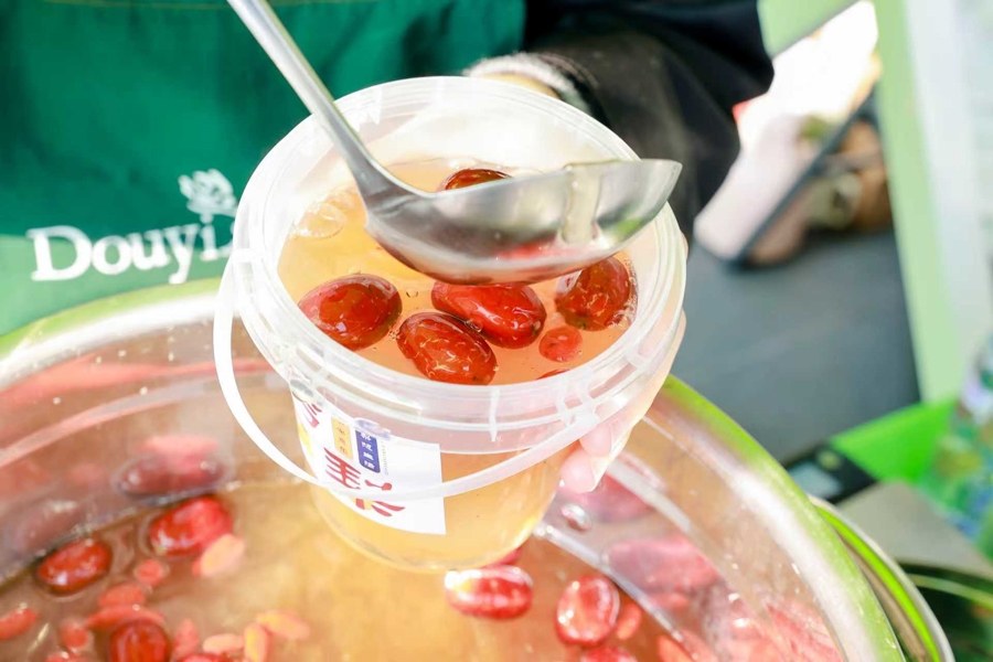 市集精准对接年轻群体需求,用“潮言潮语”和创新形式打破中医“传统古板”的刻板印象。罗店医院推出的中药手串,以檀香、陈皮等药材为原料,兼具疏肝理气功效与时尚质感,被打工人亲切称为养生“谷子”,成为现场爆款文创;宝山区中西医结合医院打造的联名中药奶茶和古法小吊梨汤,将草本精华与现代饮品结合,让秋冬润燥养生变得清甜可口。还有“赛博老中医”智能检测区,通过舌脉象分析仪、体质检测仪等黑科技,一键生成专属养生建议,吸引大量年轻人打卡体验,用科技赋能让中医走进年轻生活。